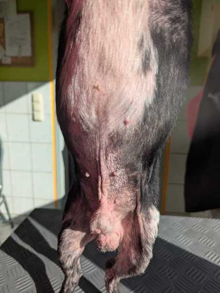 Mailo ist ein Mischling aus Chihuahua und Französischer Bulldogge. Der kleine Rüde ist mit seinen 4 Jahren schon durch viele Hände gegangen und nicht alle waren nett zu ihm. Mailo hatte so viele Flöhe dass kaum noch Haut auf seinem Körper zu sehen war. Die Ohren waren voller Hefepilze und sein Juckreiz war kaum zu ertragen. So kam er zu uns. Die Flöhe sind weg und der Pilz wird behandelt. Es lebt langsam wieder auf. Sein Fell wurde geschoren. Wir wissen nicht, wie lang es mal wird.