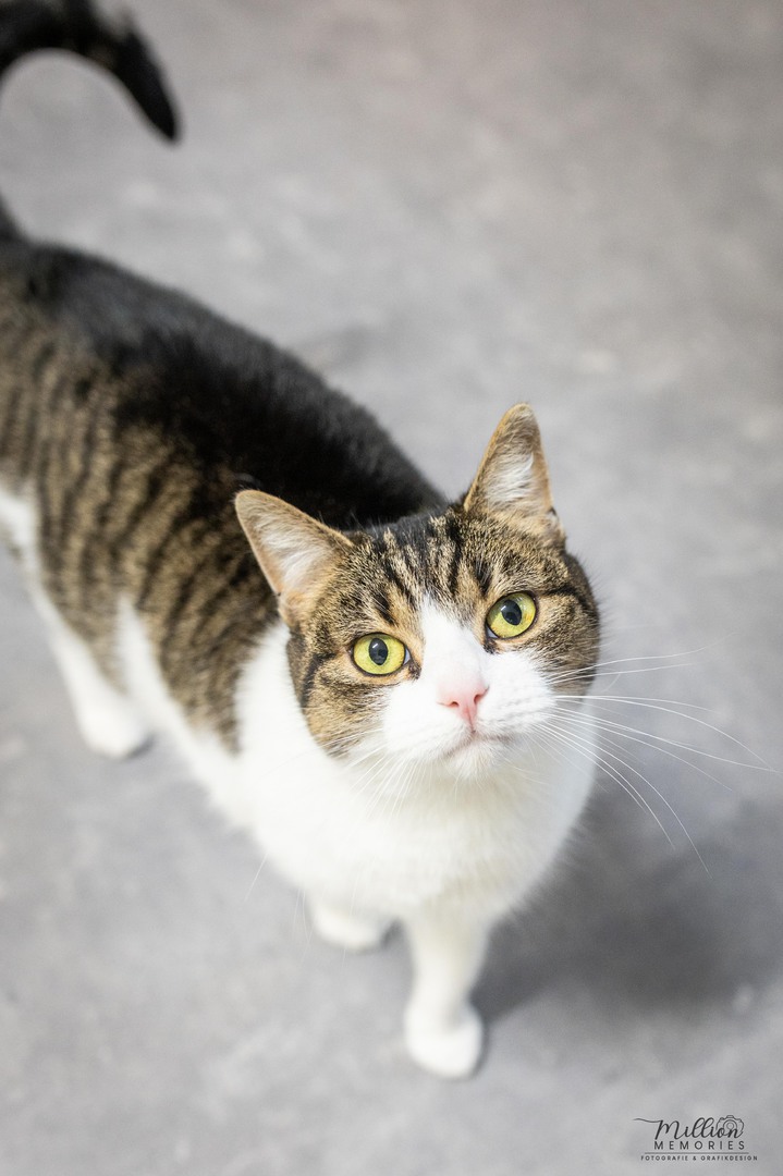Die zwei Katzendamen Fine und Trude kamen aus schlechter Haltung zu uns und haben sich hier wunderbar entwickelt. Sie lebten zuvor gemeinsam in einer Wohnung, sind sehr lieb, verschmust und verstehen sich gut miteinander. Anfangs etwas zurückhaltend, fassen sie schnell Vertrauen, sobald sie ihre neuen Menschen und die Umgebung kennengelernt haben. Sie sind kastriert, geimpft und gechippt. Wir wünschen uns, dass beide zusammen ein schönes Zuhause finden.